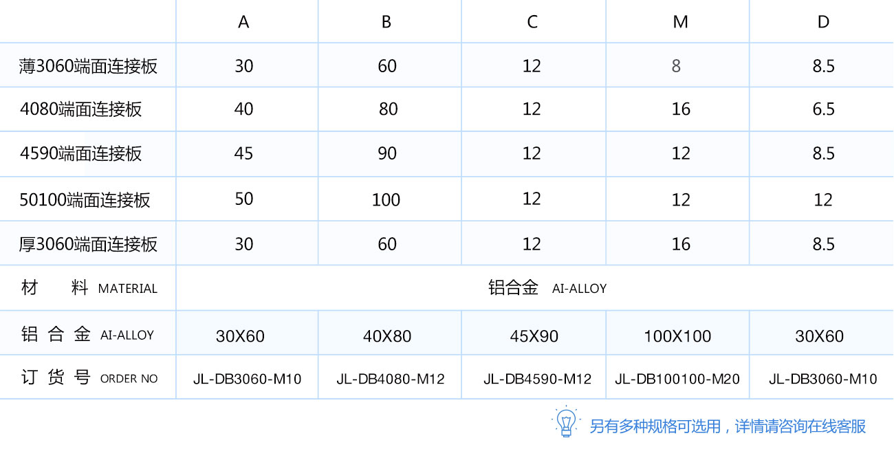 端面連接板主要用于矩形和大尺寸多孔方形型材與蹄腳及腳輪等配件連接時,起過渡作用。