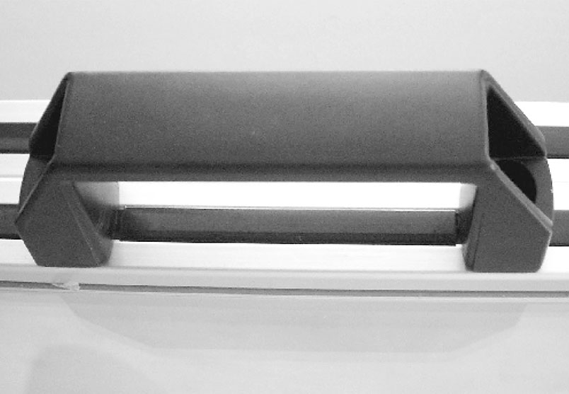 將手柄安裝在型材上,便于開啟與提攜。連接螺栓與T型螺母塊需另配。