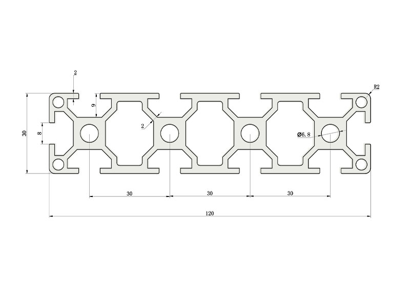 適用于應力及強度較大的框架組合結構,它的外型采用圓角過渡,表面經過陽極氧化處理,高雅美觀并抗腐蝕,它通常采用M8X20高強度專用螺栓加彈性扣件的內部連接方式,堅固而又可靠,是工業框架應用較為廣泛的型材之一。