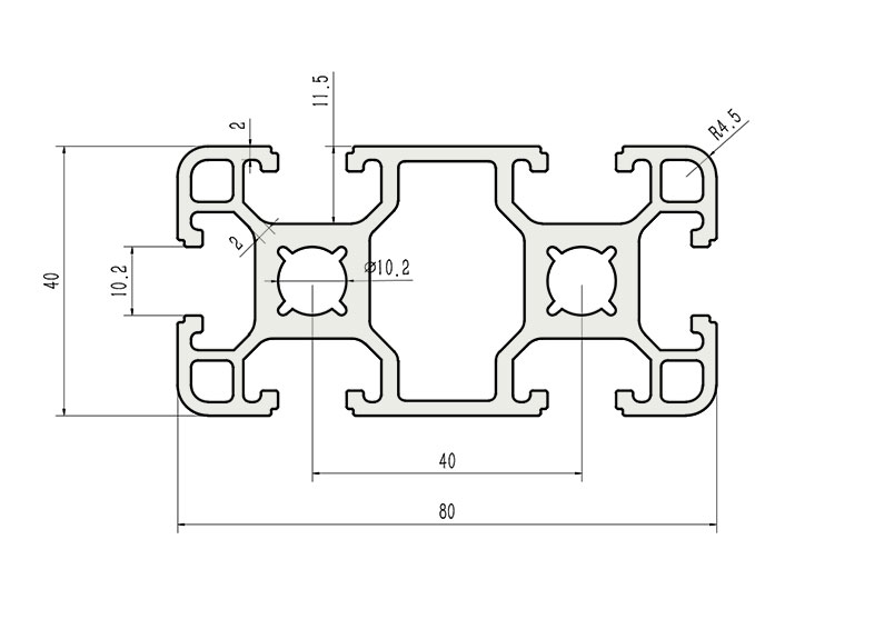 適用于應力及強度較大的框架組合結構,它的外型采用圓角過渡,表面經過陽極氧化處理,高雅美觀并抗腐蝕,它通常采用M8X20高強度專用螺栓加彈性扣件的內部連接方式,堅固而又可靠,是工業框架應用較為廣泛的型材之一。